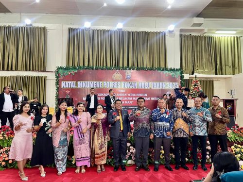 FaktaTv.com,Rokan Hulu – Polres Rokan Hulu menggelar Ibadah Perayaan Natal Oikumene Tahun 2025 pada Kamis, 18 Desember 2025, bertempat di Gedung Serbaguna Glora Bakti, Kecamatan Rambah, Kabupaten Rokan Hulu. Kegiatan yang dimulai sekitar pukul 13.00 WIB tersebut berlangsung khidmat dan penuh sukacita.