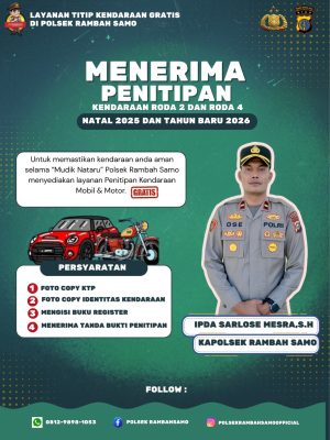 FaktaTv.com,Rohul – Kepolisian Sektor (Polsek) Rambah Samo memberikan kabar gembira bagi masyarakat yang akan melaksanakan mudik Natal 2025 dan Tahun Baru 2026 (Nataru). Polsek Rambah Samo menyediakan layanan penitipan kendaraan roda dua dan roda empat secara gratis untuk memastikan keamanan kendaraan selama ditinggal mudik.